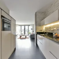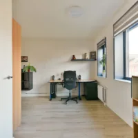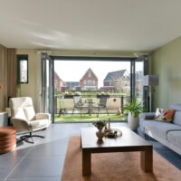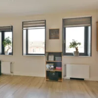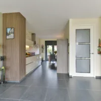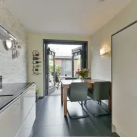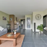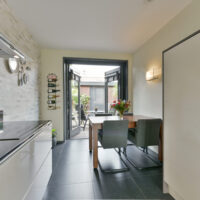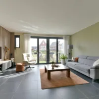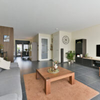 De woonkamer vormt het warme en lichte hart van de woning. Dankzij de grote raampartijen valt er volop daglicht naar binnen, wat zorgt voor een prettige en uitnodigende sfeer. Hier is alle ruimte voor een royale zithoek en een gezellige eettafel, perfect voor lange avonden met vrienden of familie.