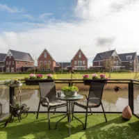 Daarnaast is er een heerlijk balkon aan het water, gelegen op het oosten. Hier geniet je in alle rust van de ochtendzon en een vrij uitzicht over het water, een plek waar je de dag perfect begint.