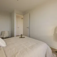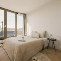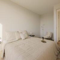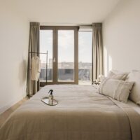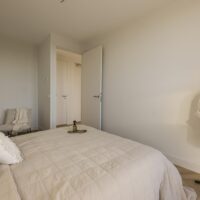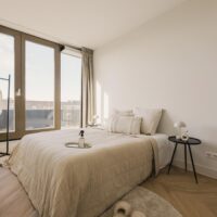 De hoofdslaapkamer is ruim, rustig en stijlvol afgewerkt. Met grote ramen en directe toegang tot het dakterras voelt het alsof binnen en buiten naadloos in elkaar overlopen. Het lichtspel gedurende de dag maakt dit een heerlijke plek om wakker te worden.