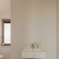 Het toilet is separaat en eveneens modern uitgevoerd.