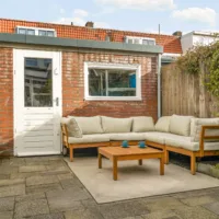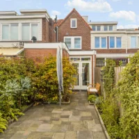 De achtertuin is verzorgd (uitgevoerd met sfeerverlichting), diep en biedt veel privacy. Dankzij de ligging op het noordoosten geniet je een groot deel van de dag tot in de avond van de zon. Er is volop ruimte om te ontspannen, te tuinieren of gezellig buiten te eten. Achterin staat een stenen berging met elektra, handig voor klussen, fietsen en gereedschap.