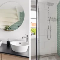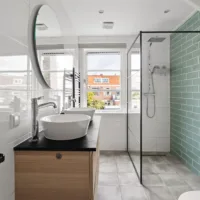 - Badkamer voorzieningen Toilet, dubbele wastafel, wastafelmeubel, inloopdouche
