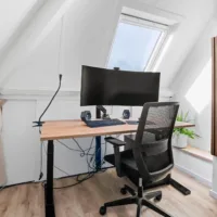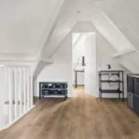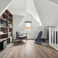 De tweede verdieping biedt ruimte aan een derde slaapkamer en een fijne thuiswerkplek voorzien van een vaste internetaansluiting en extra stopcontacten onder de schuine kap. De dakramen zorgen hier voor veel licht en een prettige sfeer.