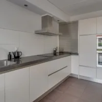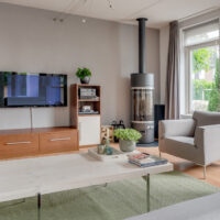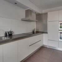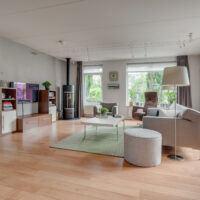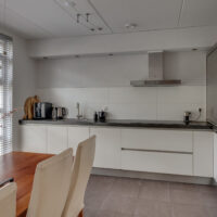 Ruime entree met hal, toilet, en toegang tot de inpandige berging. De riante living is voorzien van een sfeervolle houtkachel, Laminaat vloer, schuifpui en uitzicht over het water. De open keuken is compleet uitgerust met o.a. een inductie kookplaat, heteluchtoven, vaatwasser, koelkast, vriezer en afzuigkap.
