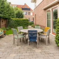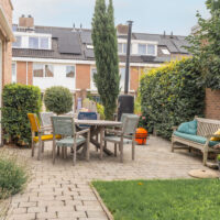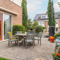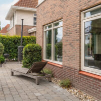 Parkeren kan op eigen terrein; er is ruimte voor twee auto’s. De zonnige tuin ligt grotendeels aan de zijkant van de woning op het zuidoosten, Achter de woning ligt een terras aan het water en de privé-aanlegsteiger.