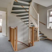 Overloop met separaat toilet. Aan de achterzijde bevinden zich twee comfortabele slaapkamers. Aan de voorzijde zijn er ook twee slaapkamers. De ruime badkamer is voorzien van een douche, en dubbele wastafel.