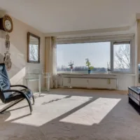 Woonkamer & balkon: de royale en lichte woonkamer biedt toegang tot het ruime balkon op het zuiden, waar u kunt genieten van een weids uitzicht over groen.