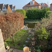 De achtertuin op het zuidoosten biedt een heerlijke balans tussen zon en schaduw. ’s Ochtends geniet je van de zon bij de achtergevel, terwijl je later op de dag heerlijk kunt vertoeven op het terras aan het water, waar de zon vrijwel altijd aanwezig is. Aan zowel de voor- als achterzijde is extra bergruimte beschikbaar.